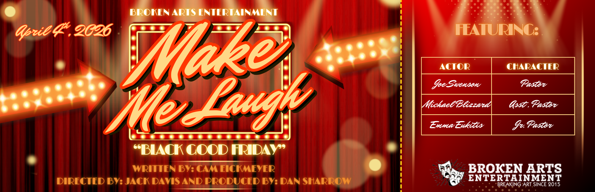 Black Good Friday production wrapped for Broken Arts Entertainment’s new series Make Me Laugh and will debut on the podcast & YouTube on April 4 at 3 pm ET